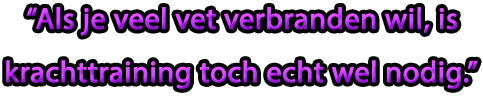 Krachttraining en cardio spelen allebei een even grote rol. Eerst dacht ik dat spier je alleen maar zwaarder en dikker zou maken, maar het is best belangrijk. Als jij een goede spierbouw heb blijf je constant calorieën verbranden zelfs als je zit voor de tv. Het is nu niet de bedoeling om een bodybuilder te worden, maar als je veel vet verbranden wil is krachttraining toch echt wel nodig. Je kan het best sporten 30 minuten na het eten, dan verbrand je de vetten nog. Probeer eten in de avond te vermijden, dat ga je namelijk waarschijnlijk niet kunnen verbranden.